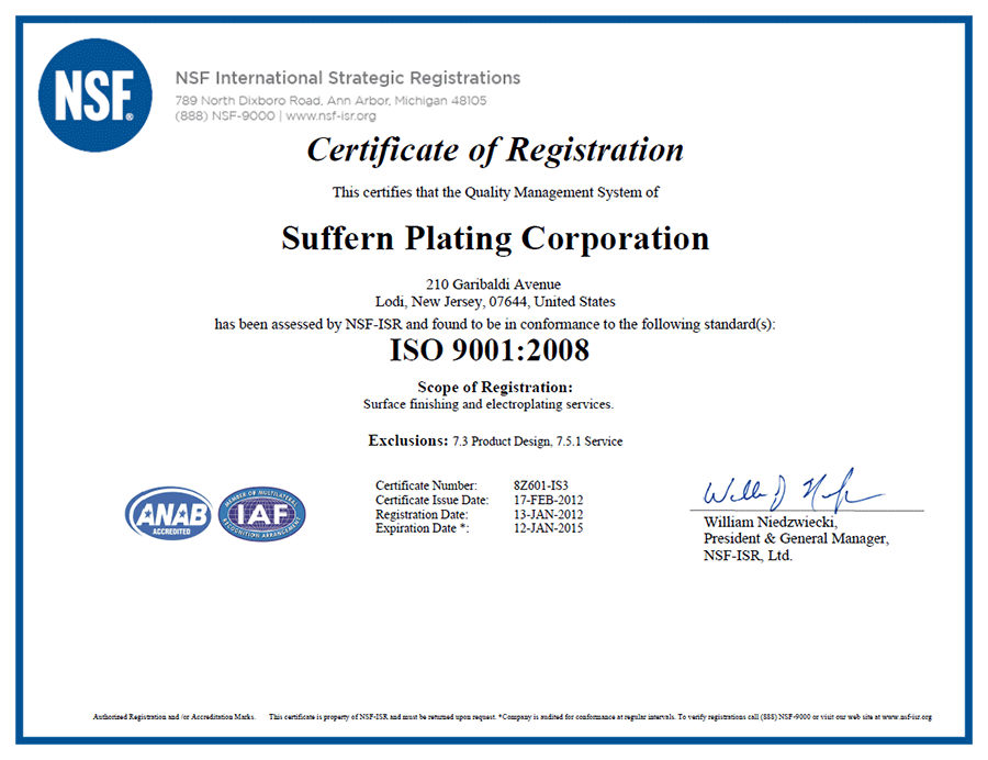 SUFFERN PLATING CORPORATION - A full service metal finishing company